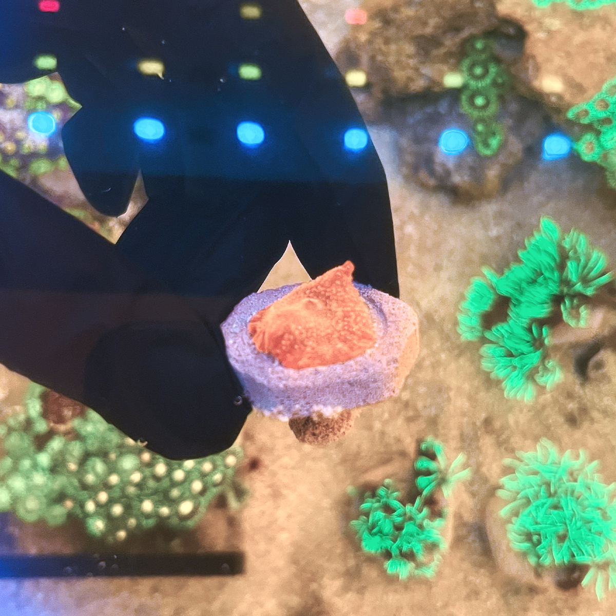 | Fluxo de água | Baixo – fluxo forte pode fazer o coral se soltar |