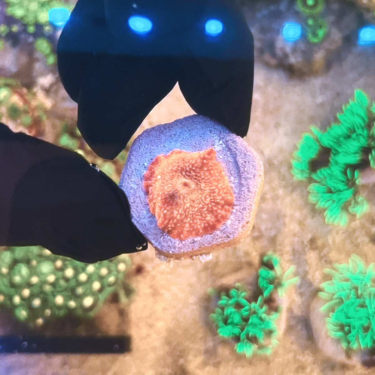 O Mushroom Red é um coral mole extremamente resistente e versátil, perfeito para aquaristas iniciantes ou para completar áreas sombreadas do aquário. Com uma coloração vermelho vibrante a vinho, sua superfície lisa ou texturizada cria um belo contraste sob luz azul, além de ser um coral de fácil propagação e baixa manutenção.