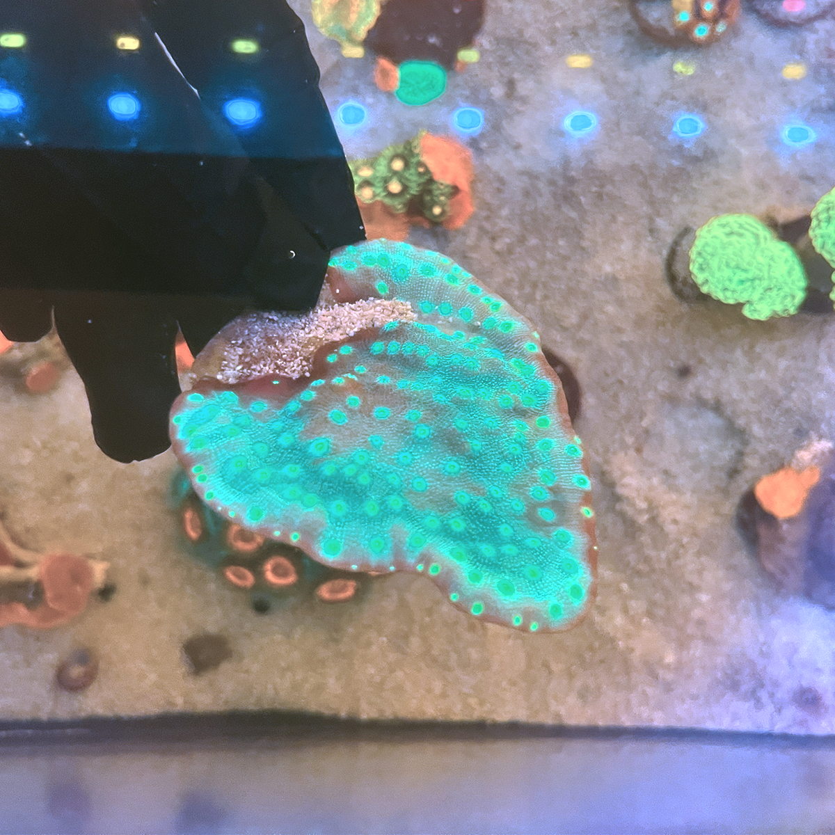 O Coral Pagoda (Turbinaria spp.) é um coral LPS de formato distinto, que lembra telhados orientais ou placas em espiral. Seus pólipos pequenos e bem definidos saem de uma base rígida, criando uma textura viva e elegante no aquário. Com coloração geralmente amarela, verde-limão ou castanho dourado, é um coral resistente, ótimo para o meio ou base do layout.