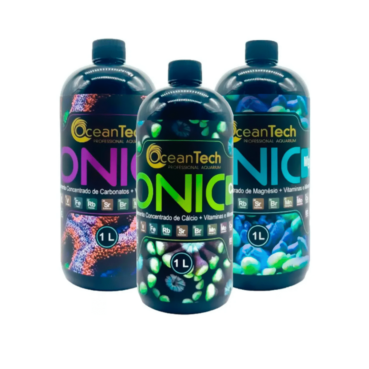 A linha Ionic da OceanTech inspira-se no método Balling que consiste em um sistema de suplementação inteligente para corais, adicionando as substâncias necessárias para o acréscimo de cálcio, KH/alcalinidade e magnésio, bem como elementos-traço essenciais, sem interferir no equilíbrio iônico. A inserção dessas substâncias nos passos corretos é um procedimento-chave para o sucesso dessa suplementação.